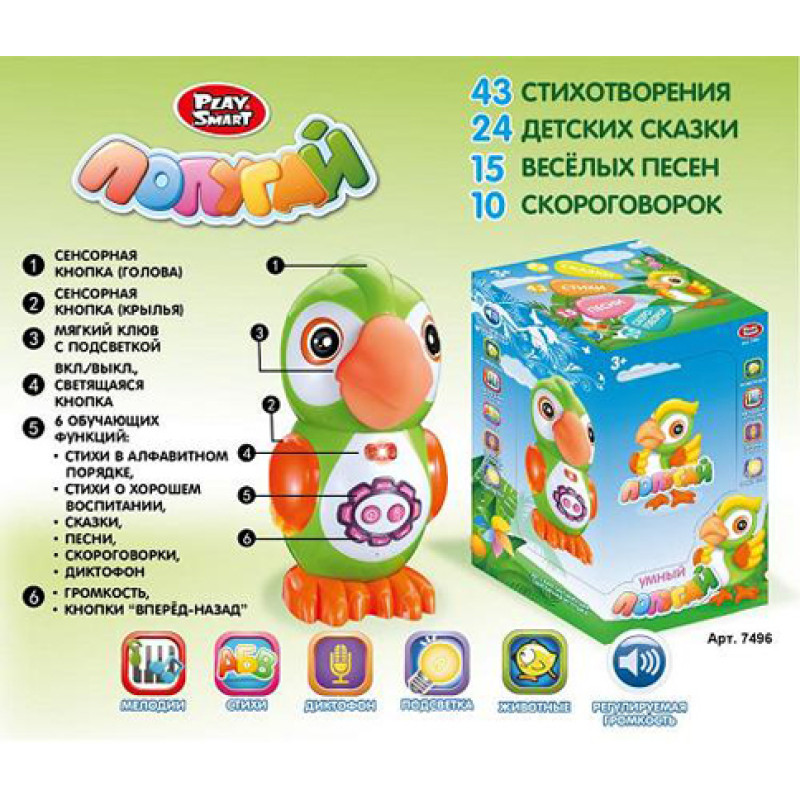 Папуга "Розумний папуга" інтерактивний музика світло 7496