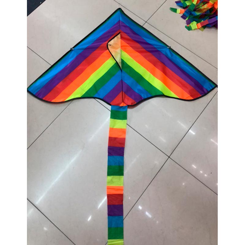 Цей виріб вирізняється яскравим декоративним рішенням: насичений райдужний принт робить його помітним у просторі. Загальний розмір становить 140 см, що визначає масштаб і візуальну привабливість під час польоту. Контрастні кольори підкреслюють форму та створюють виразний кольоровий акцент, роблячи виріб помітним і естетично привабливим для проглядання на відкритому повітрі.