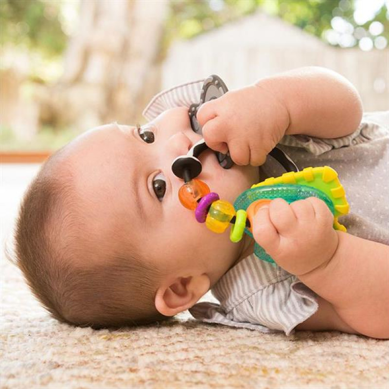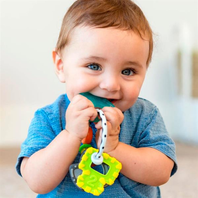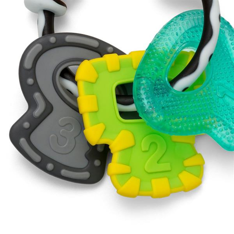 Прорізувач для зубів Infantino Ключики зроблені у вигляді брелока з ключиками.Гнучкі ключики мають випуклі малюнки для масажування ясен і розвитку сенсорики малюка. Кольорові намистинки на кільці приємно перебирати пальчиками і розвивати дрібну моторику.Прорізувач для зубів Infantino Ключики зменшить дискомфорт під час появи перших зубів і розважить малюка.Іграшка якісна і безбечна для здоровя. Підходить для дітей від народження.