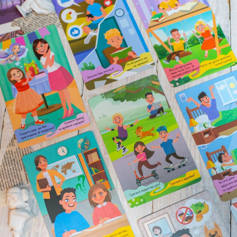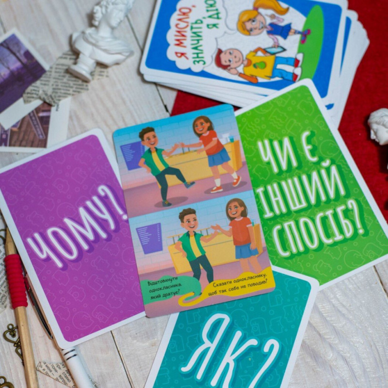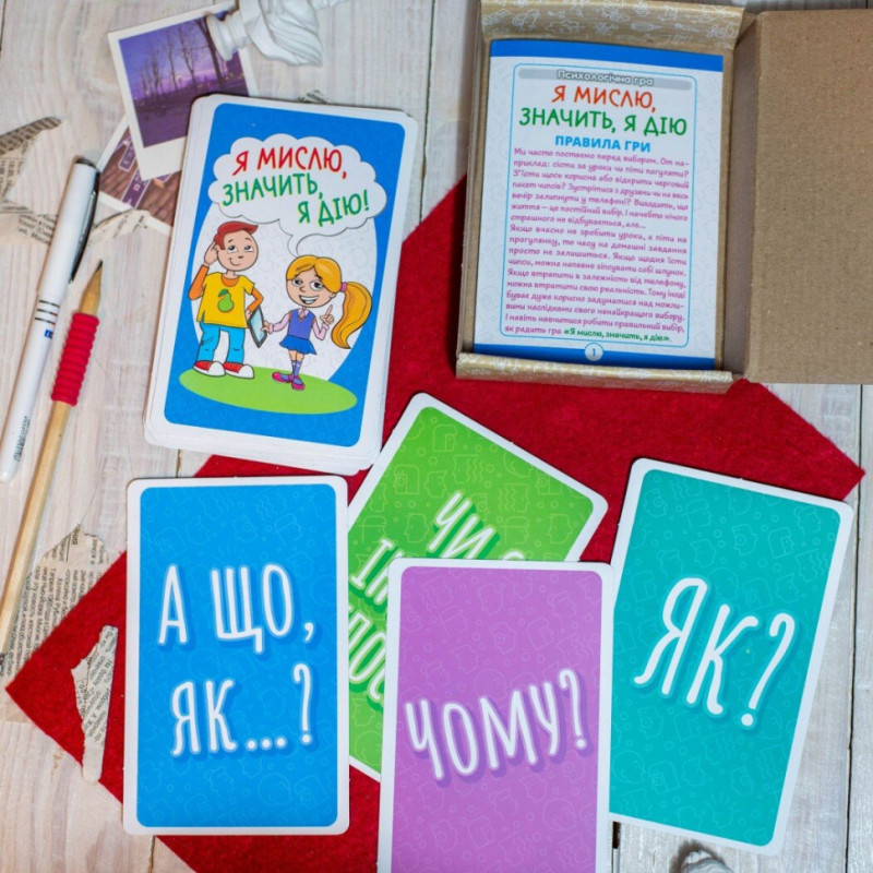 Життя — це безкінечний ряд виборів. Від малих рішень, таких як час на навчання або прогулянку, до великого: обрати зустріч з друзями чи «зависнути» в гаджетах. І гра «Я мислю, значить, я дію» допоможе підліткам задуматися про наслідки своїх дій, навчитися аналізувати варіанти та приймати зважені рішення.