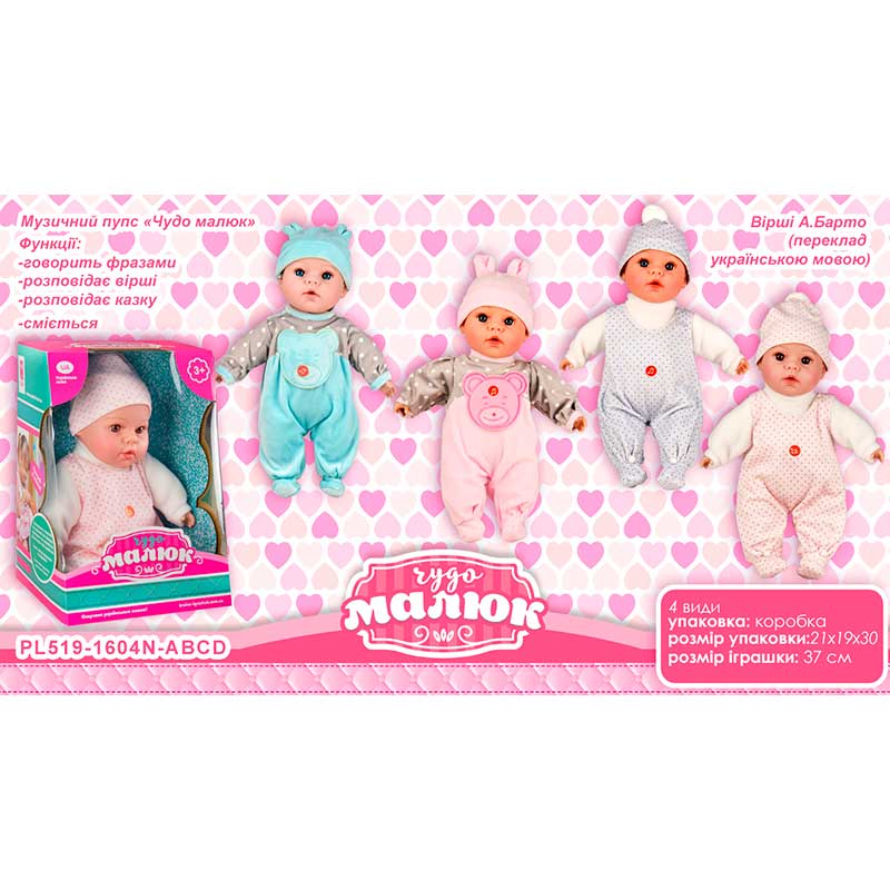 Пупс "Чудо малюк" мяконабивний укр музичний 4 види в коробці PL519-1604N-ABCD