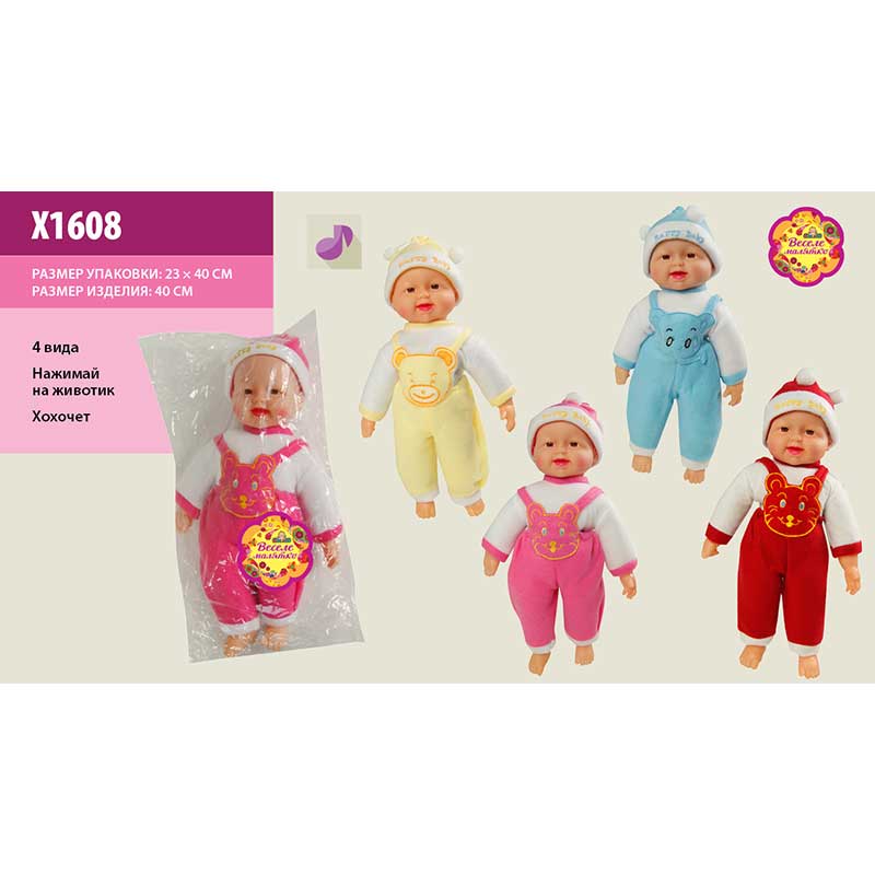 Пупс музичний розміром 40 см, 4 вида у асортименті (модель X1608) - це не лише іграшка, а й друг, який принесе багато радості і посмішок вашому малюку.