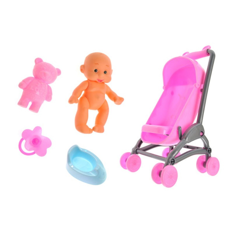 Пупс з візочком та аксесуарами в сітці LD5588B-9