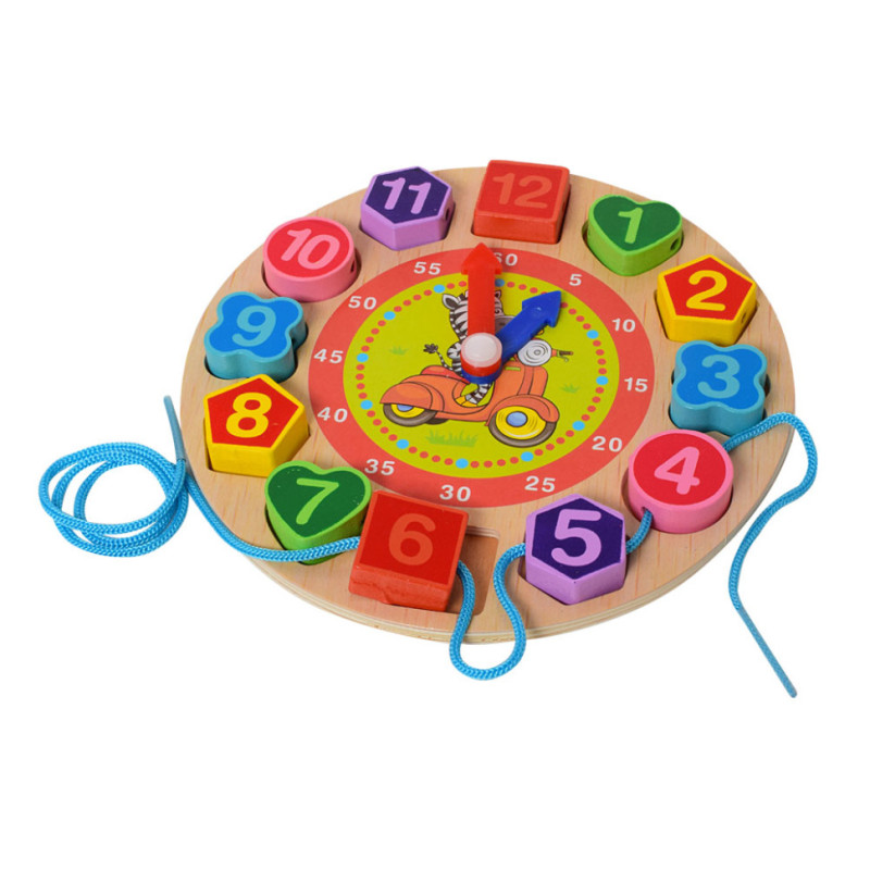Гарний годинник стане корисним аксесуаром у дитячій кімнаті, відмінним тренажером для маленьких пальчиків! Виконані з екологічної деревини, вкладиші-годинник-шнурівка наповнять приміщення приємним натуральним запахом. А також познайомлять малюка з цифрами та різноманітними геометричними фігурами.