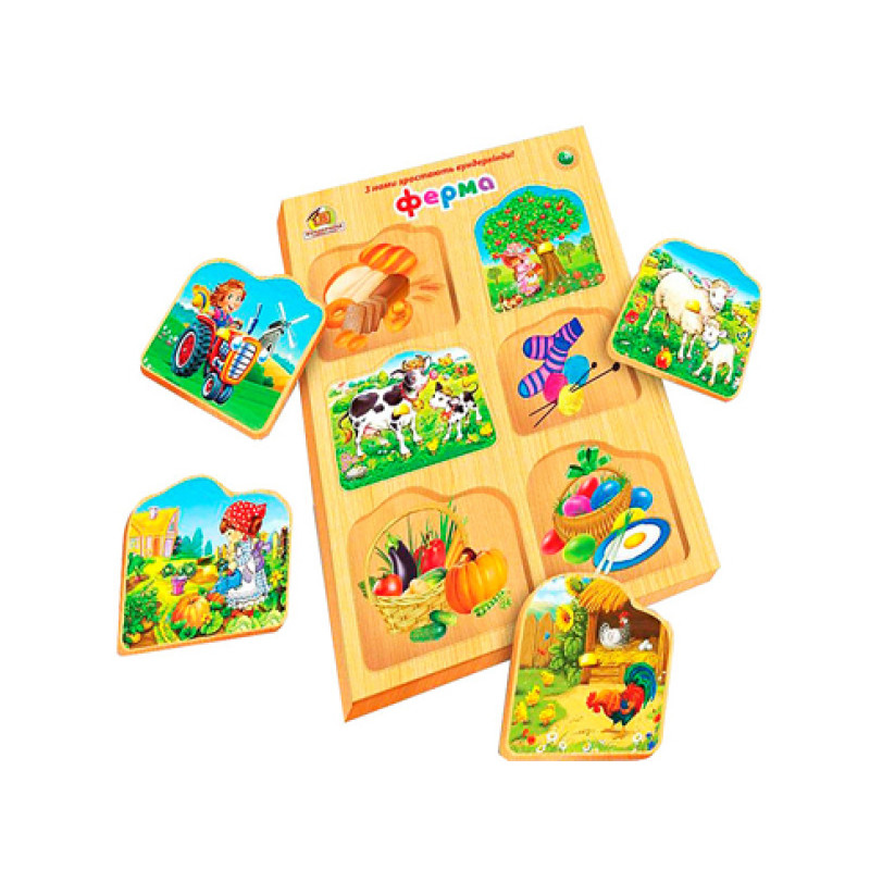 Дерев'яна іграшка Рамка-вкладиш Ферма - навчить дитину розрізняти розміри, за допомогою цієї іграшки батьки з малюком можуть виконати цілу серію завдань на розвиток дрібної моторики пам'яті та уваги.