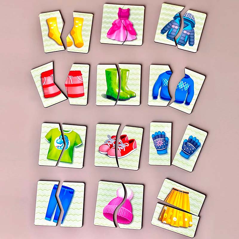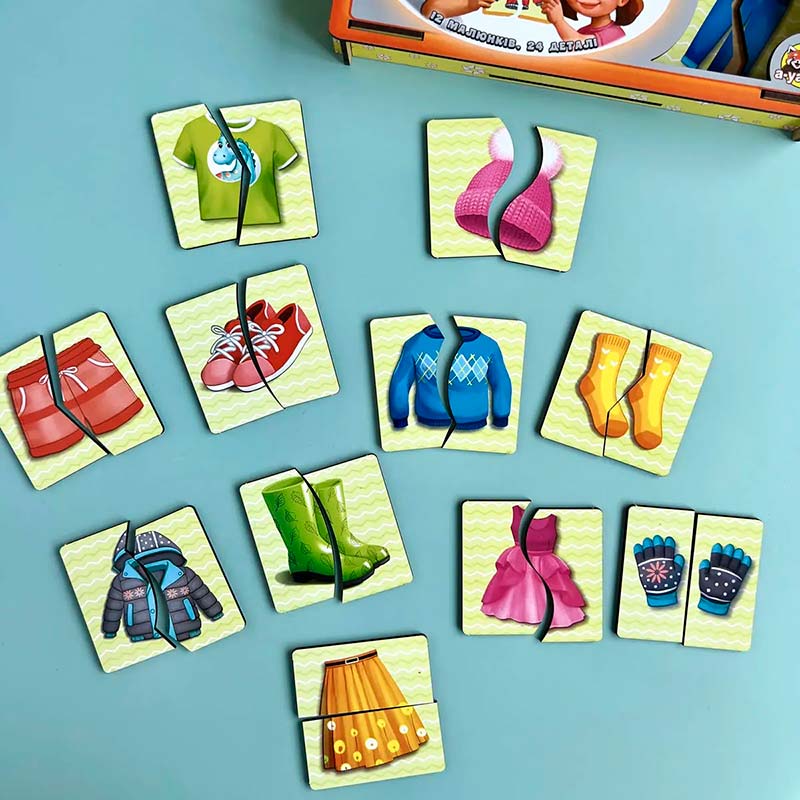 Розміри однієї цілої картинки: 7 х 7 см. У наборі: 12 тематичних картинок-половинок з різним розрізом. Картинки-половинки - це цікава розвиваюча гра, в якій потрібно скласти картинку з двох частин. Гра сприяє розвитку образного і логічного мислення, вчить сприймати зв'язок між частиною і цілим, розвиває дрібну моторику і увагу. Завдання дитини - з'єднати половинки так, щоб отримати цілі картинки.