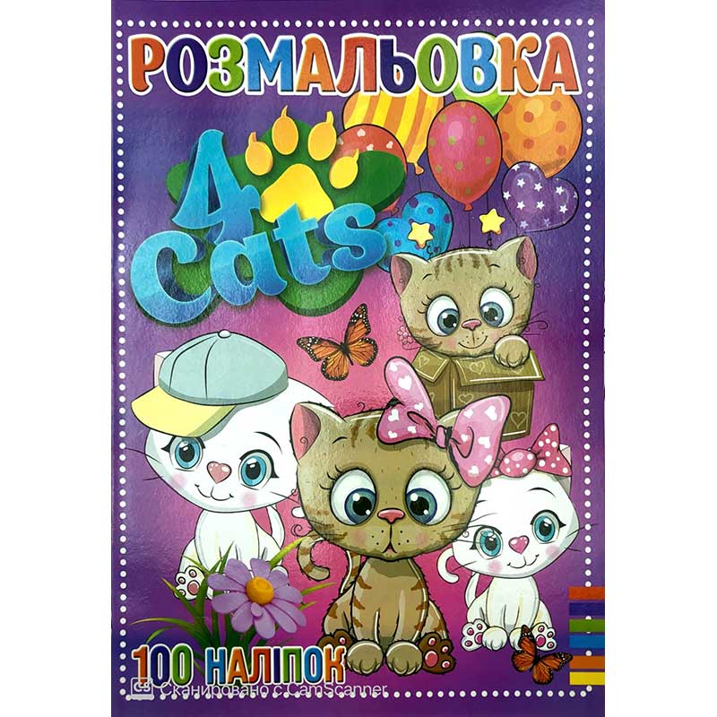 Розмальовка 100 наліпок А4 "Чотири коти" RI19082006