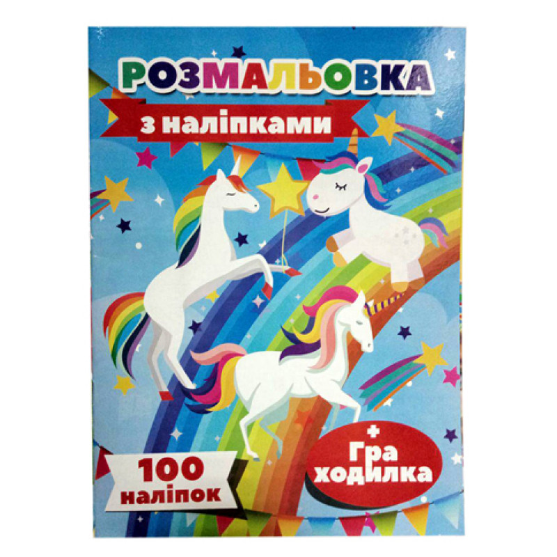 Купити Розмальовку 100 наліпок А4 Єдиноріг укр. можна в інтернет-магазині дитячих іграшок.