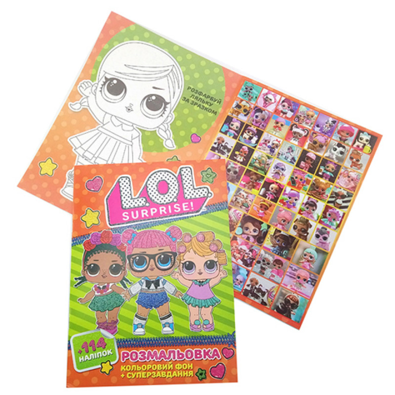 Розмальовка із завданнями 114 наліпок А4: Лол KLM2103