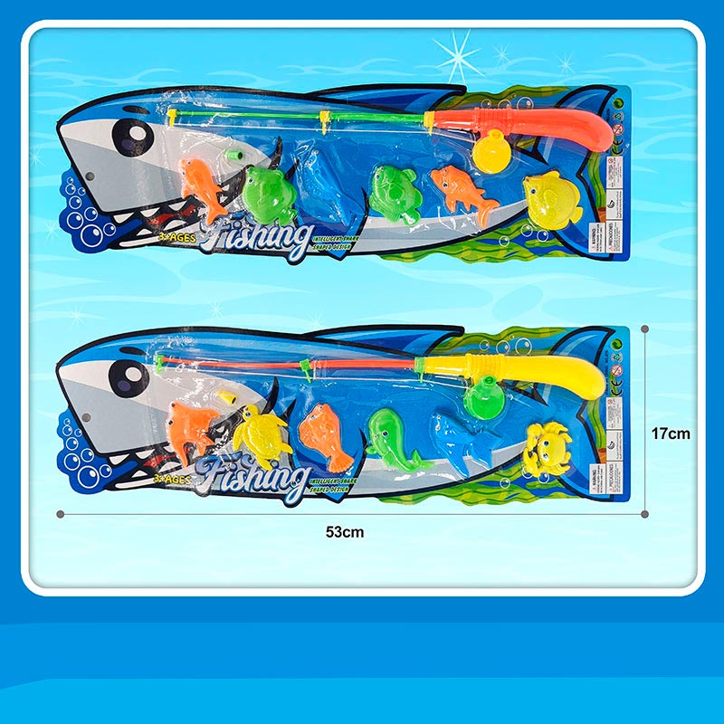 Набір складається з однієї вудки та шести рибок, що становить перелік відомих елементів комплекту. Перераховані складові — одна вудка і шість рибок — утворюють цілісний комплект та визначають його наповнення; зазначена кількість рибок дає змогу здійснити послідовне «піймання» кожної з шести одиниць у межах одного набору.