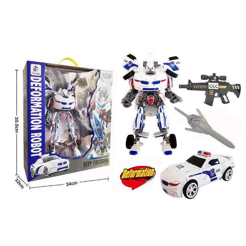 Динамічний іграшковий герой, що миттєво перетворюється з поліцейської машини на бойового робота. Цей трансформер поєднує в собі захопливу гру, сюжетні пригоди та яскраві деталі, які притягують увагу маленьких слідопитів.