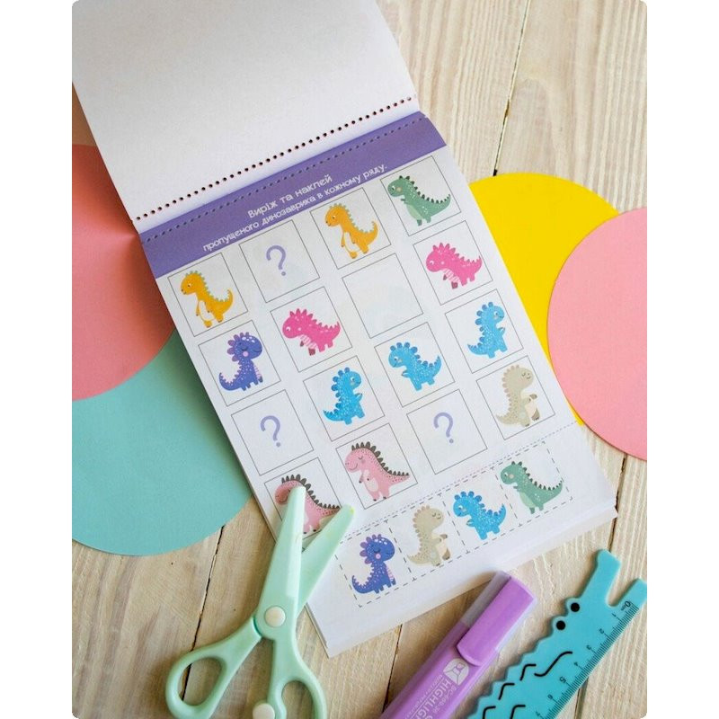 Усередині — 32 цікаві завдання, які тренують логіку, увагу, уяву, дрібну моторику й основи математики. Малюк вирізає, клеїть, лічить, розфарбовує та порівнює, граючись — і навчається без зусиль.