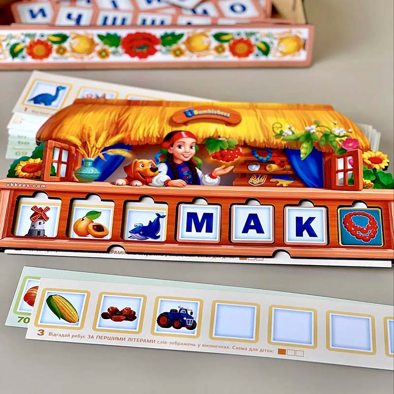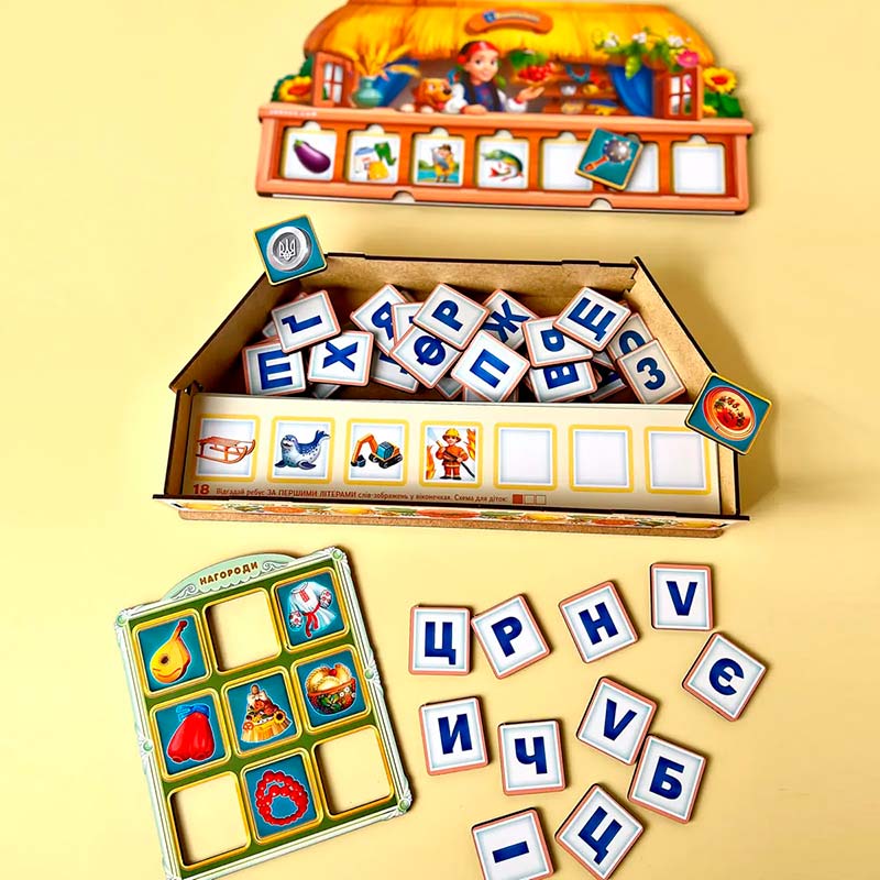Це саме та гра, в яку можна грати великою компанією або в сімейному колі, адже буде цікаво не тільки дітям, а і батькам Завдання: відгадати ребус за першими або за останніми літерами слів-зображень у віконечках. Завданння різної складності В наборі - дерев’яна коробочка - основа планшет - 70 карток з завданнями - 42 літери - 9 нагород за вірно відгадане слово Вік: 3+ Гра дозволить дитині розширити лексичний запас, познайомитися з безліччю нових слів, логічно мислити, фантазувати та чудово провести час Вчимося самостійно викладати слова, повторюємо букви, вчимося читати, тренеруємо пам’ять і мислення. Запропонуйте дитині викласти з букв своє ім’я, прізвище або рідне місто