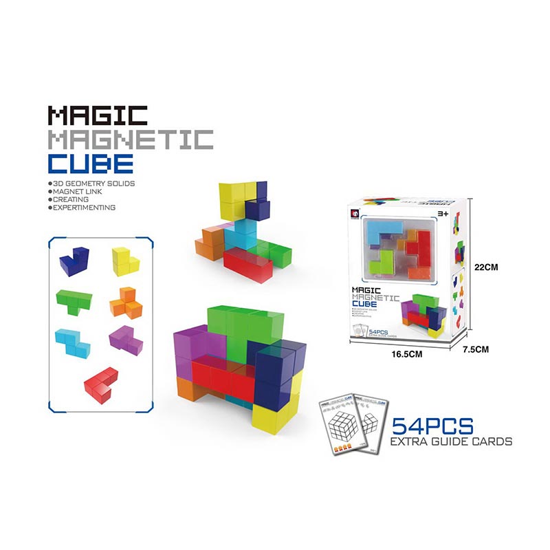 Ця гра поєднує конструктор і головоломку, створена, щоб заохотити дитячу допитливість і подарувати годинник творчої гри. Магнітні елементи легко з'єднуються між собою, дозволяючи збирати куби, фігури та абстрактні композиції без зайвих зусиль.