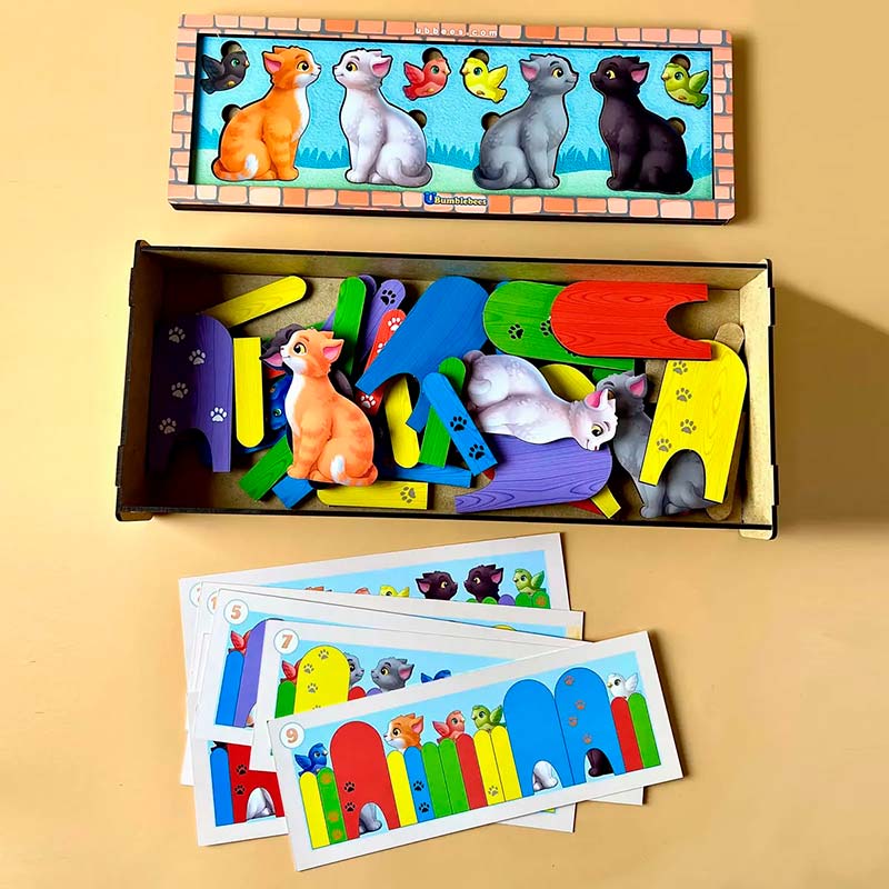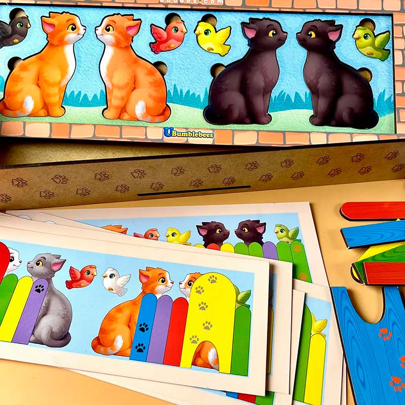 Розвиваюча гра з картками UBEE "Котики за парканом" з дерева ПСФ150