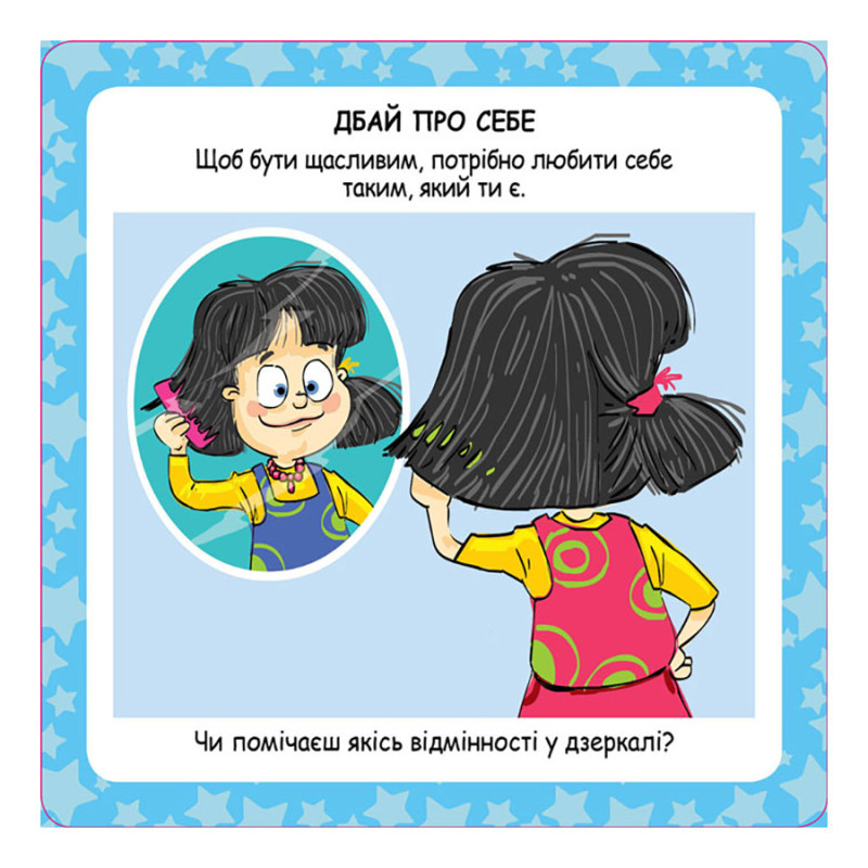 Як навчити дитину бути щасливою? За допомогою цього набору карток ви дізнаєтесь про методи і прийоми покращення настрою в дитини. Малюк навчиться піклуватися про себе, своїх близьких і навколишній світ; розвине вміння контролювати свої емоції і переконається в тому, що щастя людини залежить значною мірою від неї самої.