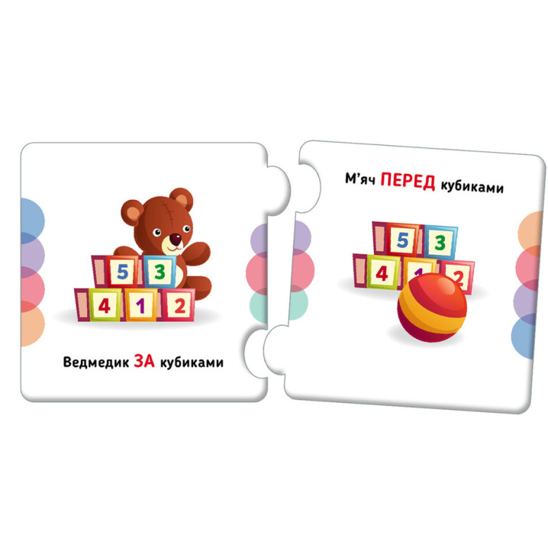 Набір «Орієнтування у просторі» не лише навчає діточок базових понять, як-от: «над», «під», «близько», «далеко», а й допомагає навчитися їх протиставляти.