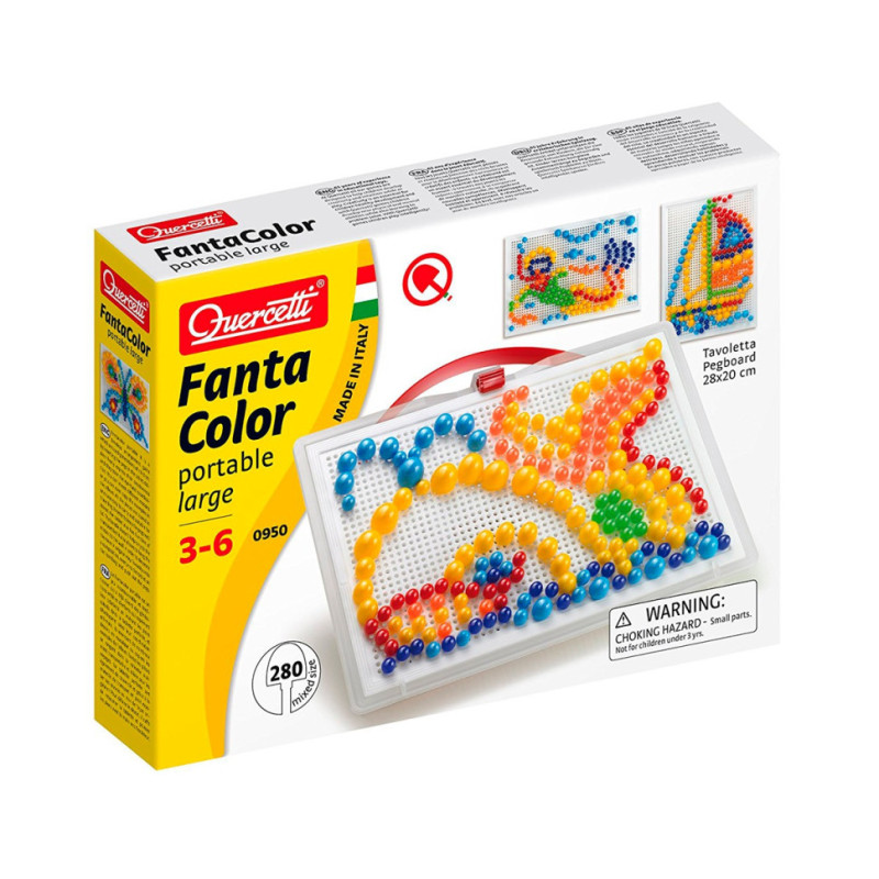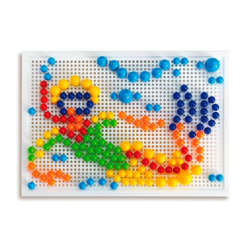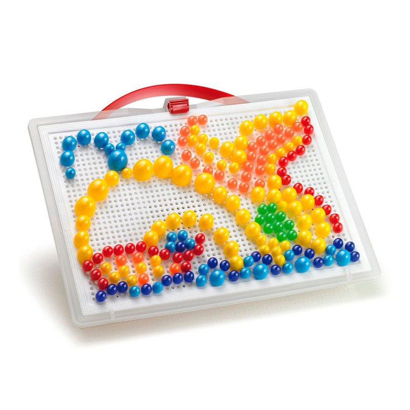 Набір - для занять мозаїкою включає 280 різнокольорових пластикових фішок, дощечку з розміром 28х20 сантиметрів і спеціальне перенесення. За допомогою перенесення, дитина може показувати свої творчі роботи батькам і при цьому не розкидавши фішки по дому. Виробництво ігрового набору - італійське. Дитяча мозаїка виготовлена з - високоякісного пластику. Купити Набір - для занять мозаїкою можна за оптимальною вартістю на сайті дитячих товарів Goodtoys.com.ua