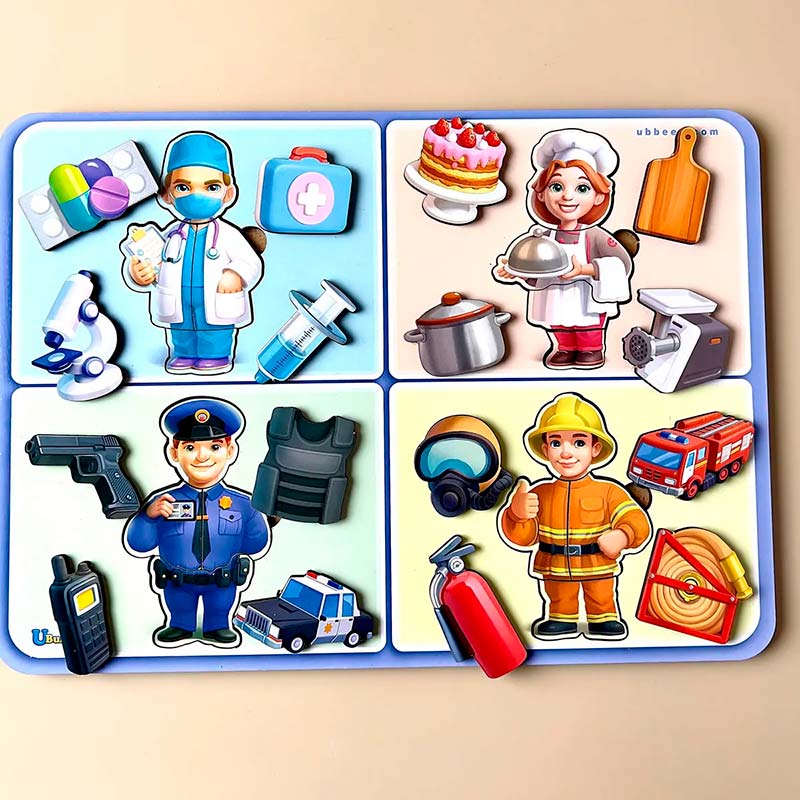 Розвиваючий пазл-вкладка UBEE "Професії" з дерева ПСФ160