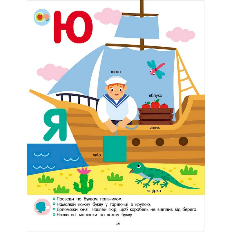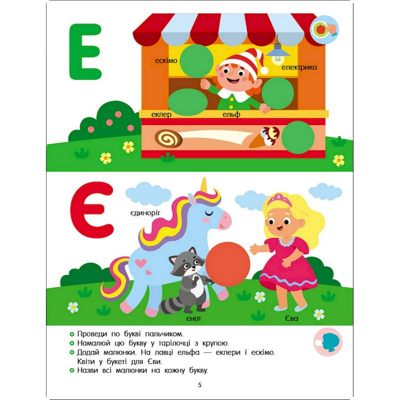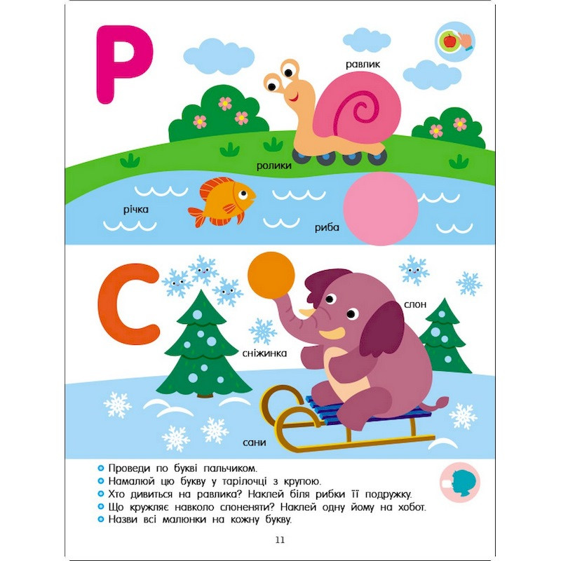 Знайомтеся із зошитом "Абетка" та впевнено говоріть "тепер я знаю". Що? Літери українського алфавіту. Як звучать літери у словах. Як відтворити літеру на письмі. Як розпізнавати звучання літери у словах. Вивчайте абетку разом із динозавриком, зеброю та єдиноріжком. Наклеюйти наліпки та вчіться концентрації. Називайте малюнки на кожну букву. Намалюйте пальчиком літеру та не просто, а у тарілочці з крупою. Відео за QR-кодом покаже, як правильно це зробити.