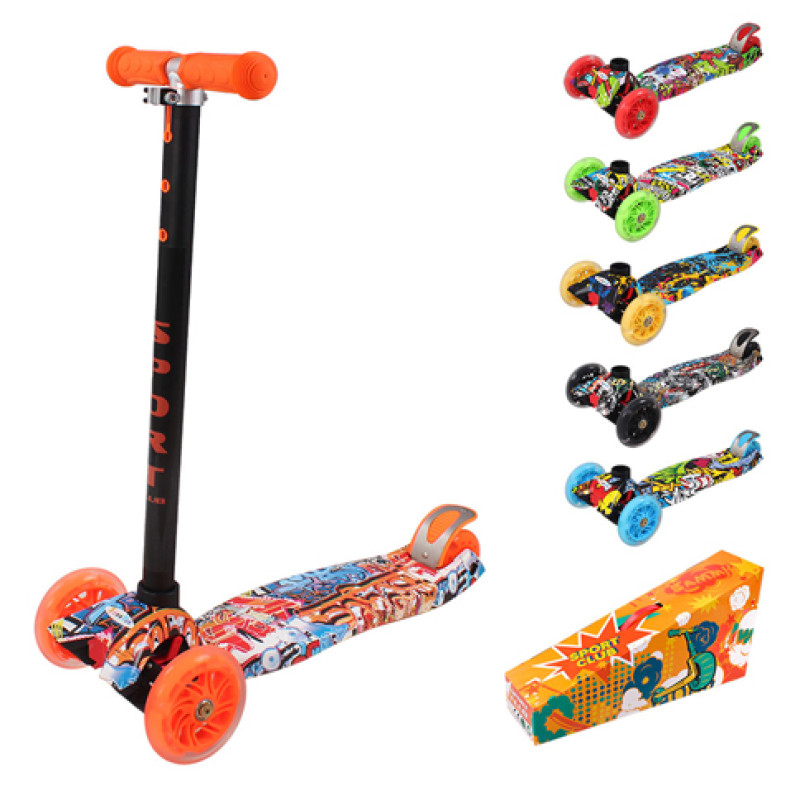 Самокат чотириколісний пластиковий з малюнками та світлом - чудовий вибір для малюків, які обожнюють прогулянки на свіжому повітрі.