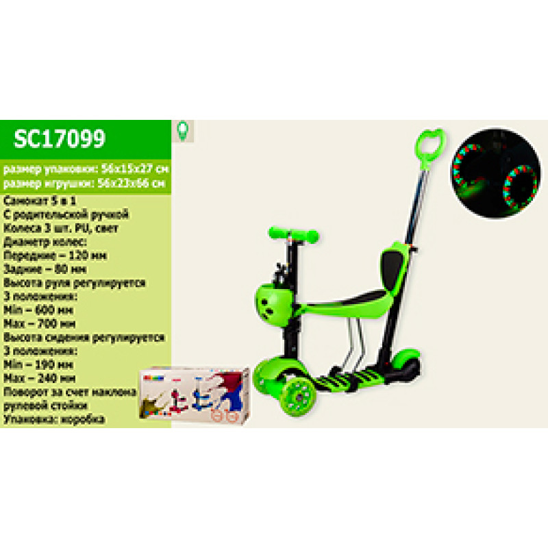 Самокат дитячий 3-х колісний Зелений зі світлом SC17099