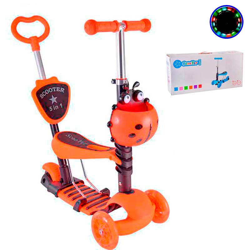 Дитячий самокат Bambi з батьківською ручкою PU колеса зі світлом ПомаранчевийВ SC20139В