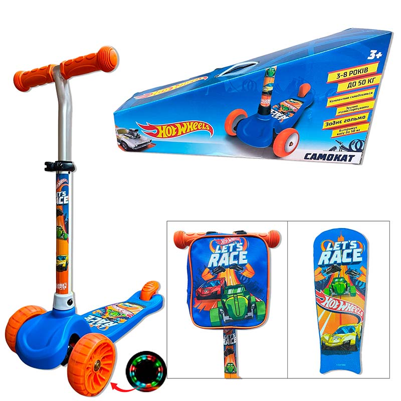 Самокат дитячий 3-х колісний Hot Wheels PU зі світлом