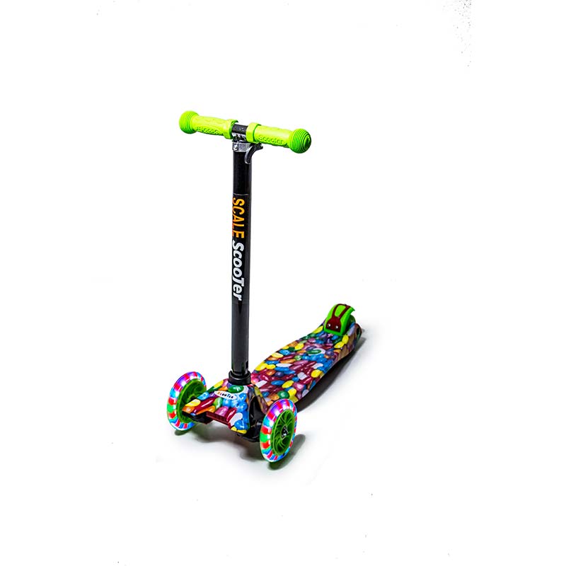 Триколісний самокат scooter з малюнками на платформі популярна модель у дітей і школярів. Це практичний дитячий самокат. Завдяки добре підібраним розмірам основних компонентів і можливості знімати ручку. Також, він дуже яскравий і привертає до себе підвищену увагу. Малюнок нанесений по всій поверхні платформи. Колеса світяться під час руху.