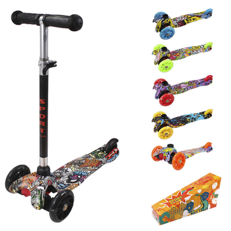 Самокат триколісний пластиковий з малюнками та світлом - чудовий вибір для малюків, які обожнюють прогулянки на свіжому повітрі.