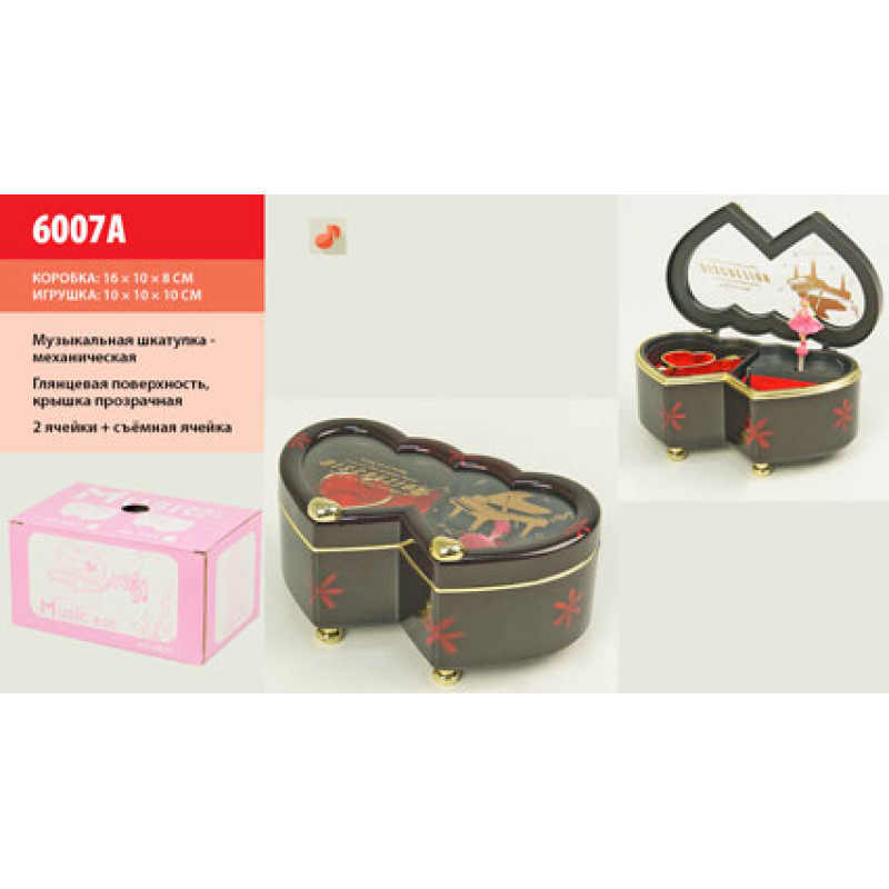 Шкатулка муз 6007A (48шт) "Серце подвійне" з балериною, в кор. 15,5*9,5*7,5см