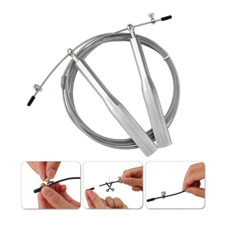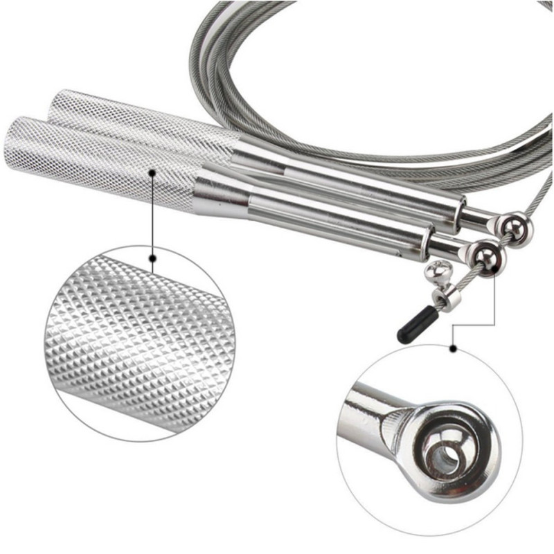 Ручки скакалки зроблені з металу, мають насічки для зручнішого та надійнішого хвата, що забезпечує забезпечують комфортне та безпечне виконання вправ.