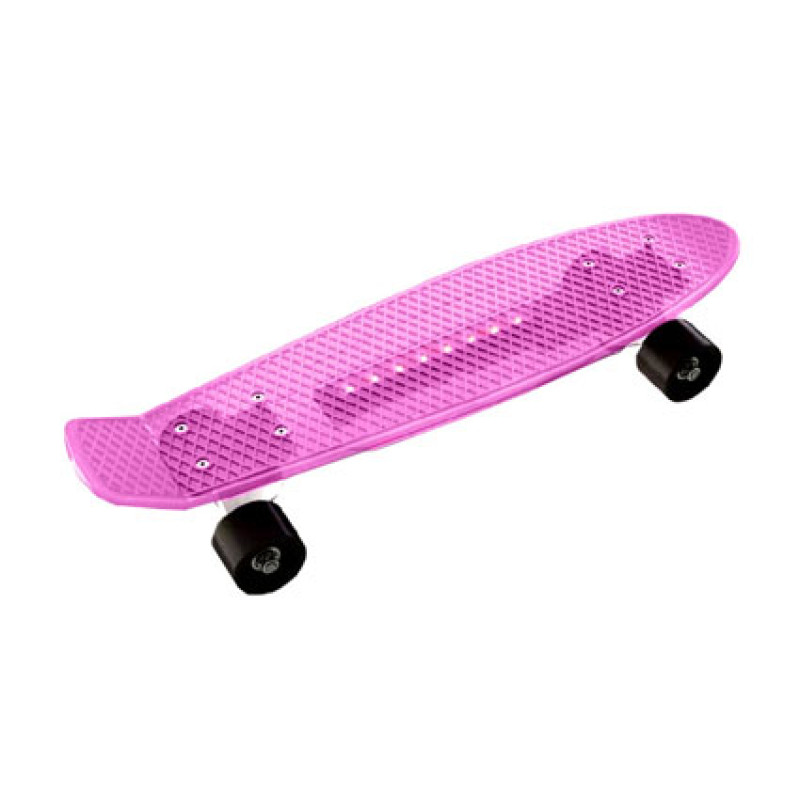 Скейт рожевий - сучасний скейтборд рожевого кольору, виконаний у класичному стилі, складається з пластикової дошки і чотирьох поліуретанових коліс, а також металевої підвіски.