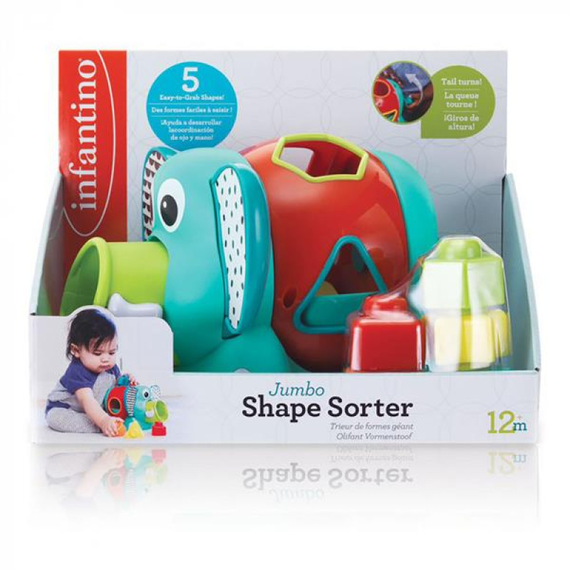 Хто не любить збирати конструктор? Новинка від європейського бренду INFANTINO припаде до душі маленьким і дорослим. Дитяча Розвиваюча іграшка сортер Джамбо стане ідеальним подарунком для кожної дитини старше 1 року. Суть гри полягає в тому, щоб правильно підібрати фігурки за формою і розміром. Яскраві кольори допоможуть крихті правильно впорядкувати і помістити кубики всередину барвистого слоника. Для того, щоб почати захоплюючу гру спочатку потрібно натиснути на вуха нового знайомого і всі детальки випадуть з хобота. Розвиваюча іграшка для дітей Джамбо внесе різноманітність в будні непосиди, буде розвивати логіку, посидючість і уважність.