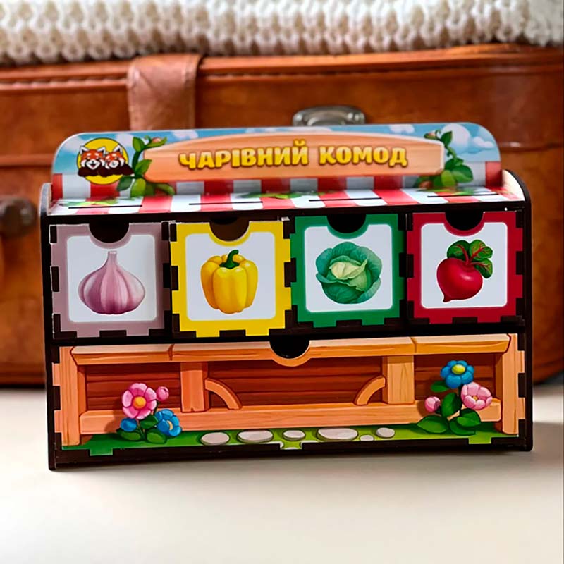 Розвиваюча іграшка-сортер В«Чарівний комодик – Рахунок 1В» (ПСД069) – це дерев'яна навчальна гра, створена для розвитку логічного мислення, навичок сортування та базових математичних знань у дітей від 3 років.