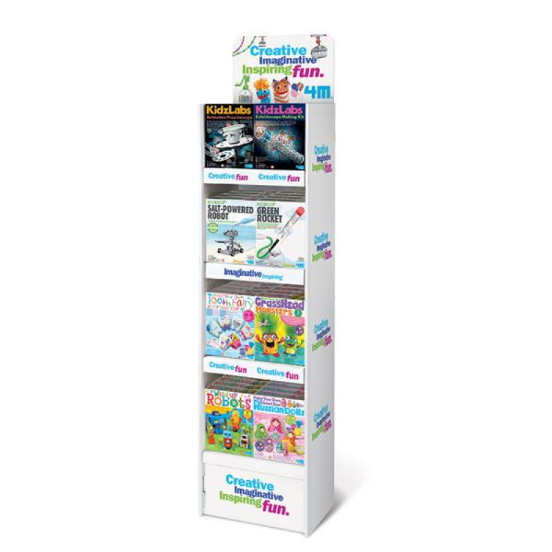 Стелаж вміщує до 40 наборів для творчості серії Generic або 32 комплектів Kidz Labs. Розмір у зібраному вигляді 41 x 29 x 150 см.
