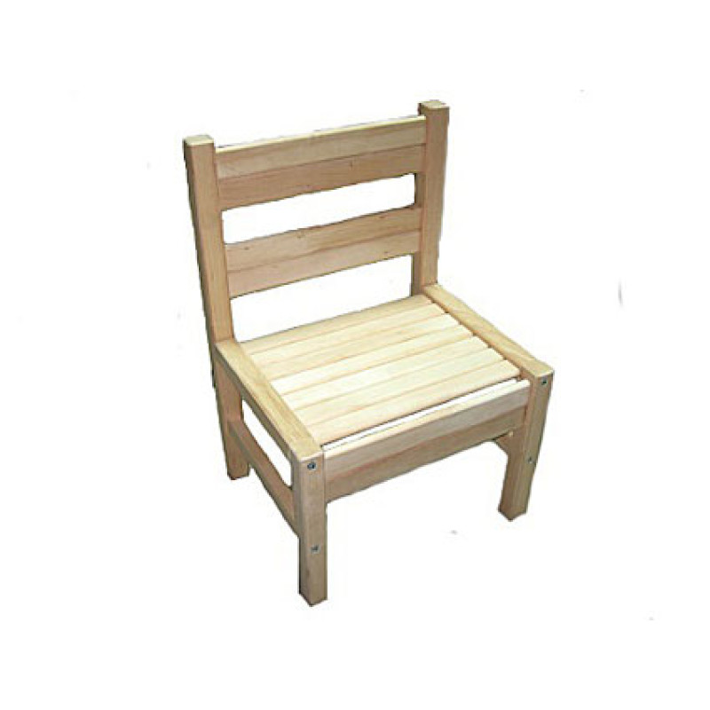 Стільчик зі спинкою дерев'яний, виготовлений із твердих порід дерева - бук, вільха, призначений для сидіння особам віком від 3-х років. Відстань від сидіння до підлоги - 26 см, від підлоги до верхнього краю спинки - 52 см, розмір сидіння 28 ? 30 см. Виріб без лакофарбового покриття. повністю зібраний