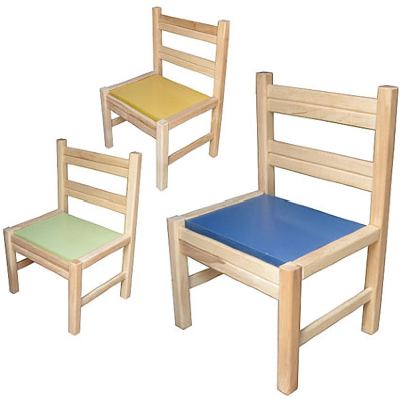 Стільчик зі спинкою дерев'яний, виготовлений із твердих порід дерева - бук, вільха, призначений для сидіння особам віком від 3-х років. Відстань від сидіння до підлоги-30 см, від підлоги до верхнього краю спинки-56 см, розмір сидіння 28 ? 30 см. Виріб фарбований, має глянцевий блиск. Повністю зібрано