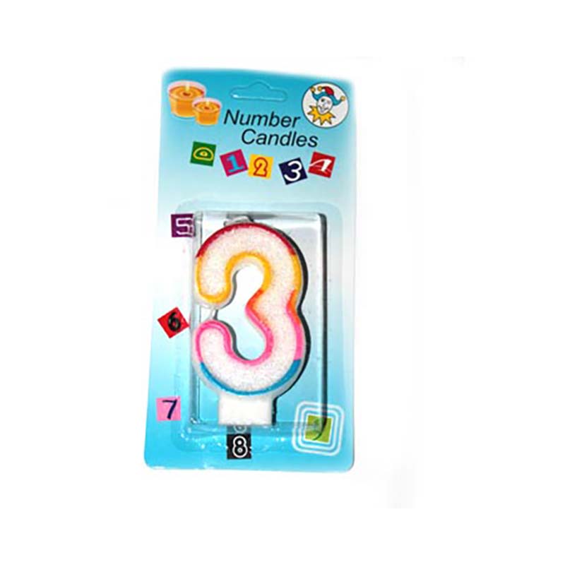 Свічка для торту біла з кольоровою рамкою цифра 3 151400000000180