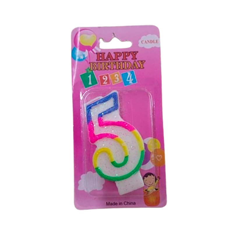Свічка-цифракольорова з блистками "5" 10-114