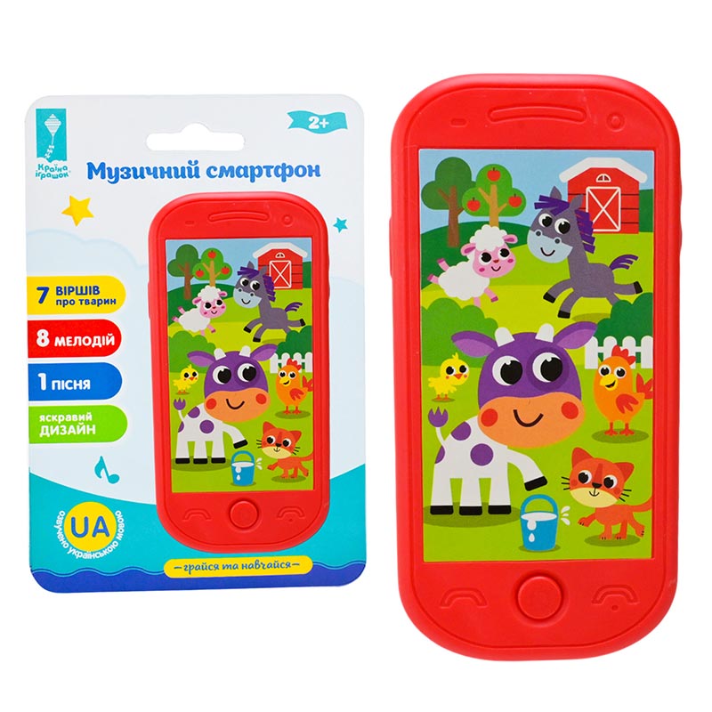 Іграшка часто має кнопки, які діти можуть натискати, щоб почути різні звуки чи музику, що робить гру ще цікавішою та захопливішою. Музичний телефончик також сприяє розвитку когнітивних навичок, вивченню нових звуків і стимулює мовленнєву активність малюка.