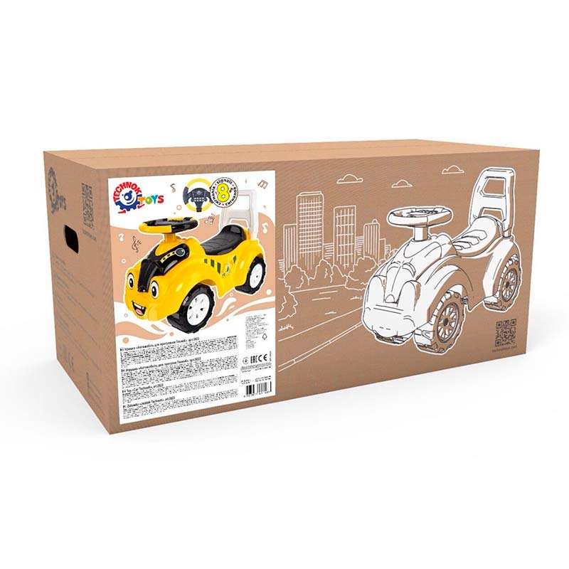 Дитяча каталка Автомобіль для прогулянок зі звуковим сигналом ТехноК Жовтий 6689