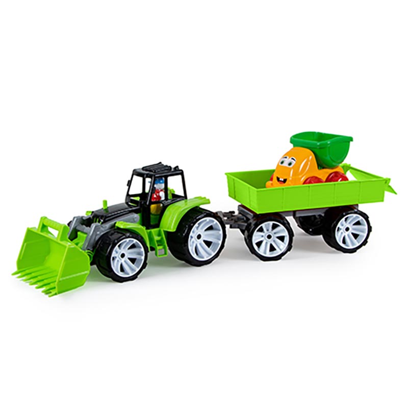 Ідеальний для розвитку моторики та соціальних навичок — трактор у комплекті з причепом дарує додаткові можливості для перевезень, побудови сюжетів та колективних ігор з друзями.