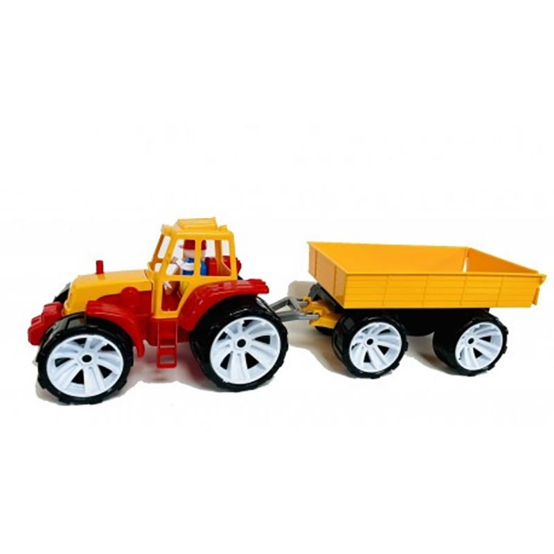 Яскравий і привабливий іграшковий трактор створений для веселих ігор у кімнаті й на вулиці. Він легко привертає увагу дитини своїм дизайном та дозволяє розвивати уяву під час рольових сюжетів.