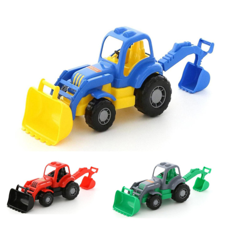 Трактор-екскаватор "Здоровань" - трактор оснащений механічним пристосуванням для руху. Кабіна трактора відкрита, в неї можна садити фігурки, висотою до 8 сантиметрів. У машини немає металевих деталей, вона підходить для ігор у воді та на узбережжі. Ківш трактора рухається і фіксується в певному положенні. Іграшки підходить для транспортування вантажів і риття траншей.