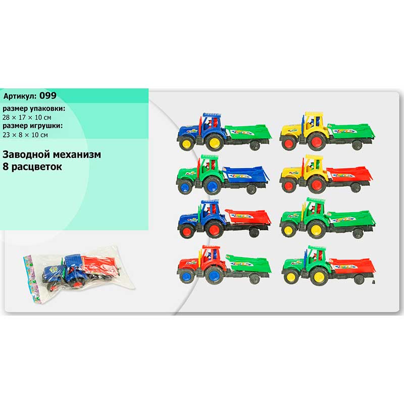 Трактор інерц 8 кольорів в асортименті з причепом 099