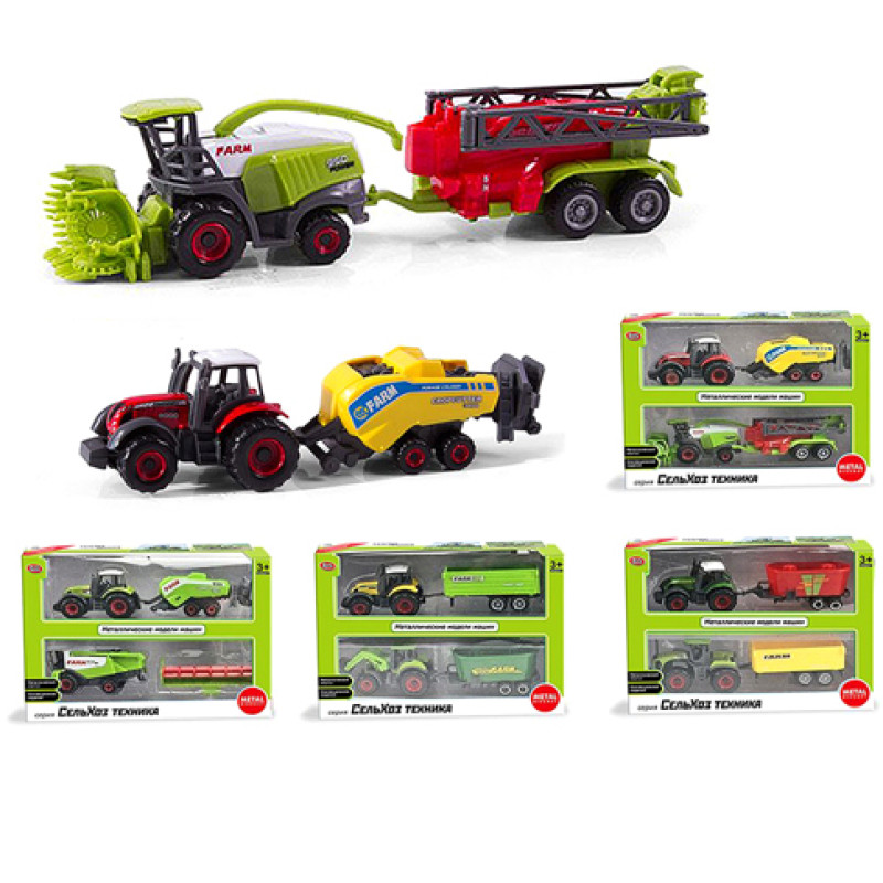 Трактор/Комбайн з причепом - дві металеві моделі в одній коробці, виконані в масштабі, мають металевий корпус.