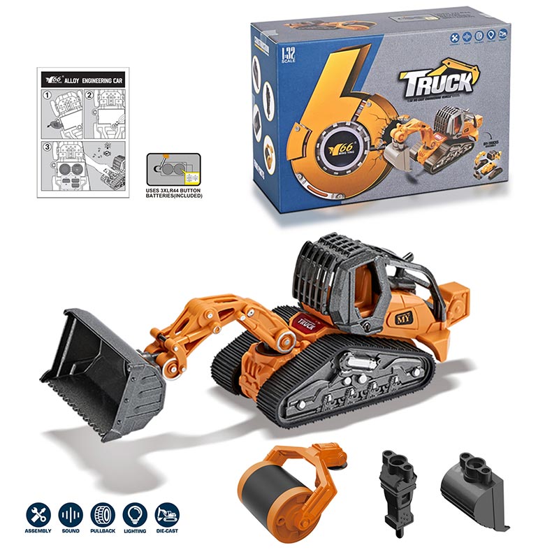 У комплекті кілька змінних головок: ковш для копання, лопата-ковш, ударний бур та дорожня ковзанка, що дають змогу перетворювати екскаватор на різні види будівельної техніки.