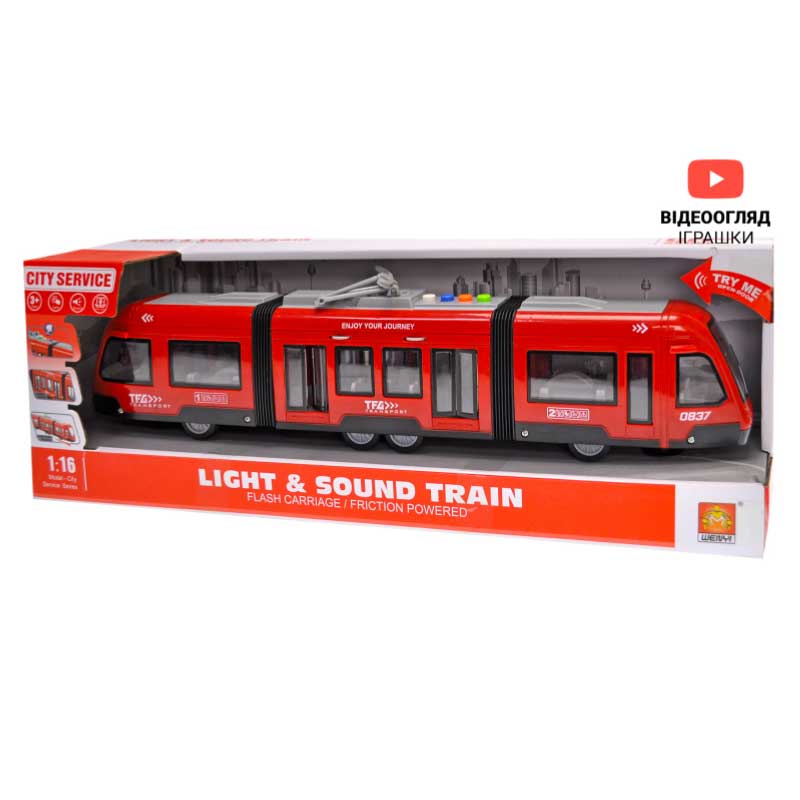 Трамвай інерційний, озвучений, зі світлом, в коробці WY930AB р.48*10,5*16,5