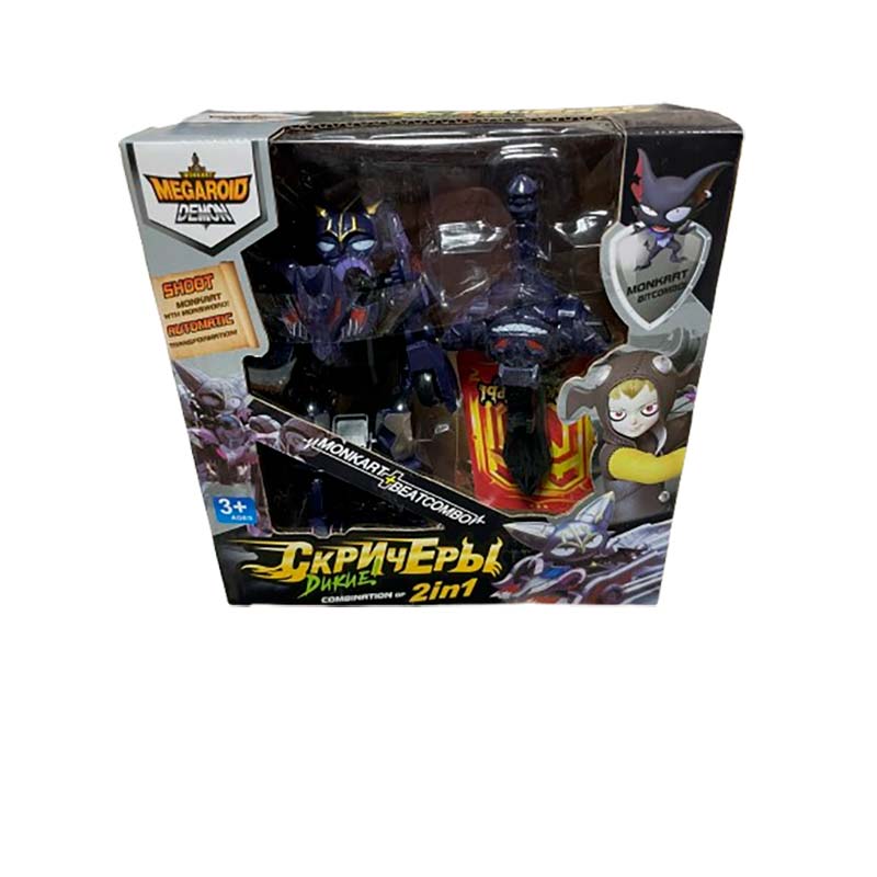 У комплект входять скрічер, меч і картка. Виготовлена з міцного пластику, ця іграшка має розміри: машинки - 7,5 см, меч - 10,5 см, розмір робота після трансформації - 10,5 см.